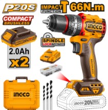 CIDLI20868 Taladro Percutor Brushless Ingco 20V 86NM + Baterías + Accesorios