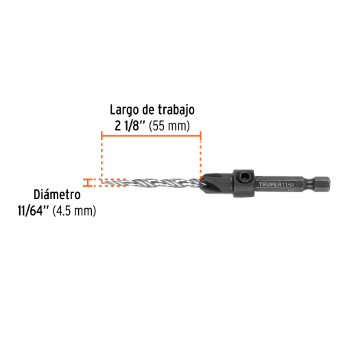 102376 Broca avellanador #8 para madera, 11/64″, TRUPER