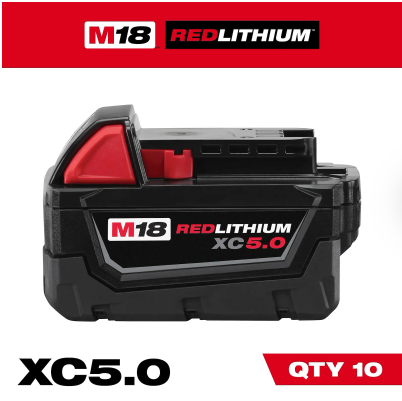 Las baterías M18™ REDLITHIUM™ XC5.0 Ah que ofrecen hasta 2,5 veces más autonomía que las baterías de litio estándar. Estos ofrecen hasta un 20 % más de potencia que las baterías de litio estándar, lo que se traduce en una mayor velocidad de aplicación y un mayor alcance para los usuarios finales. Con la protección REDLITHIUM™, los paquetes ofrecen una protección líder en la industria contra vibraciones/impacto, agua y calor.