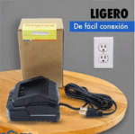 Además está diseñado para cargar baterías de 20V y 4Ah, lo que garantiza una carga eficiente y segura para tus herramientas.