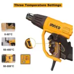 HG200078 Pistola de Calor 2000W con Accesorios Ingco