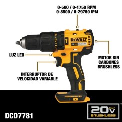 DCD7781 Taladro Percutor 1/2" 20V Brushless (SOLO CABEZAL) El precio original era: S/300.00.El precio actual es: S/180.00.