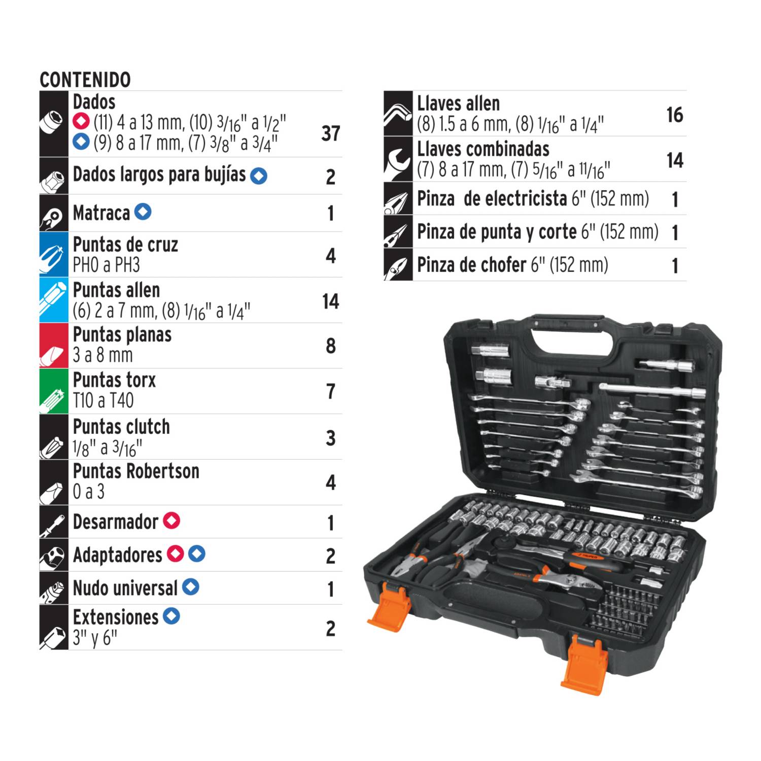 Juego de 119 herramientas 1/4″ y 3/8″ mixtas para mecánico